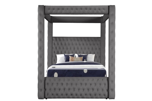 Galaxy Home Lorenzo Gold Detailed Tufted Upholstery Queen Bed in Grey
